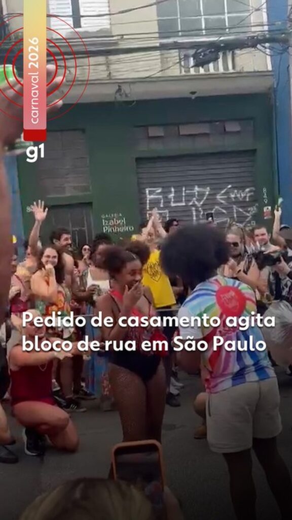No primeiro dia oficial do pré-carnaval de São Paulo, neste sábado (7), a capital paulista viveu momentos de romance e estreia. Durante o cortejo do bloco Amor Barato, na Barra Funda, Zona Oeste, Victor Martins pediu a mão de Bruna Ananias em casamento diante dos foliões. O casal integra o grupo há dois anos e foi aplaudido pelos participantes, mesmo com o céu nublado.